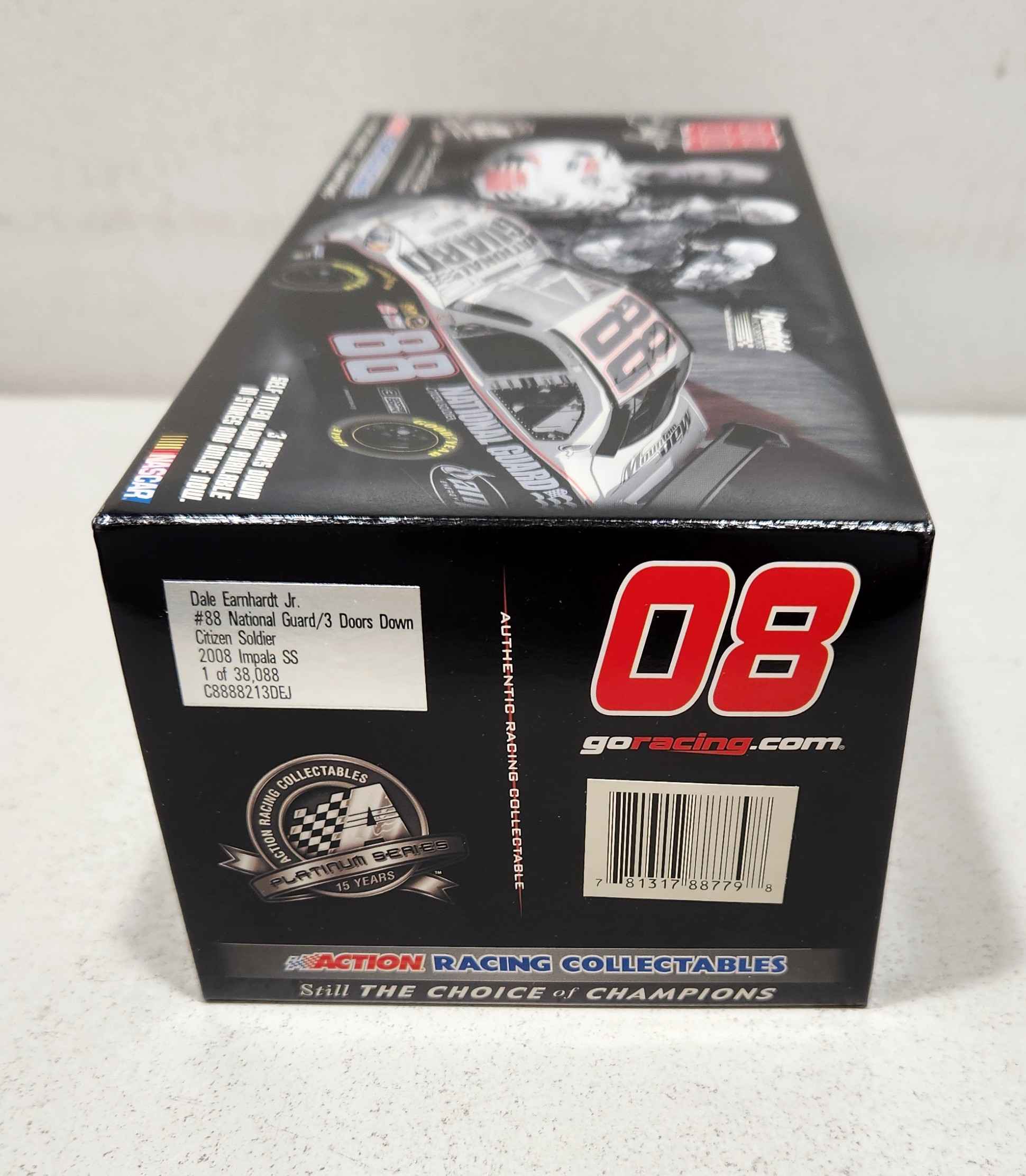 In Stock! 1 of 38,088 Dale Jr. will rev his engine in the National Guard® Citizen Soldier #88 Impala at the All-Star Race. Its special monochromatic paint scheme features an all black and silver design with a hint of red.